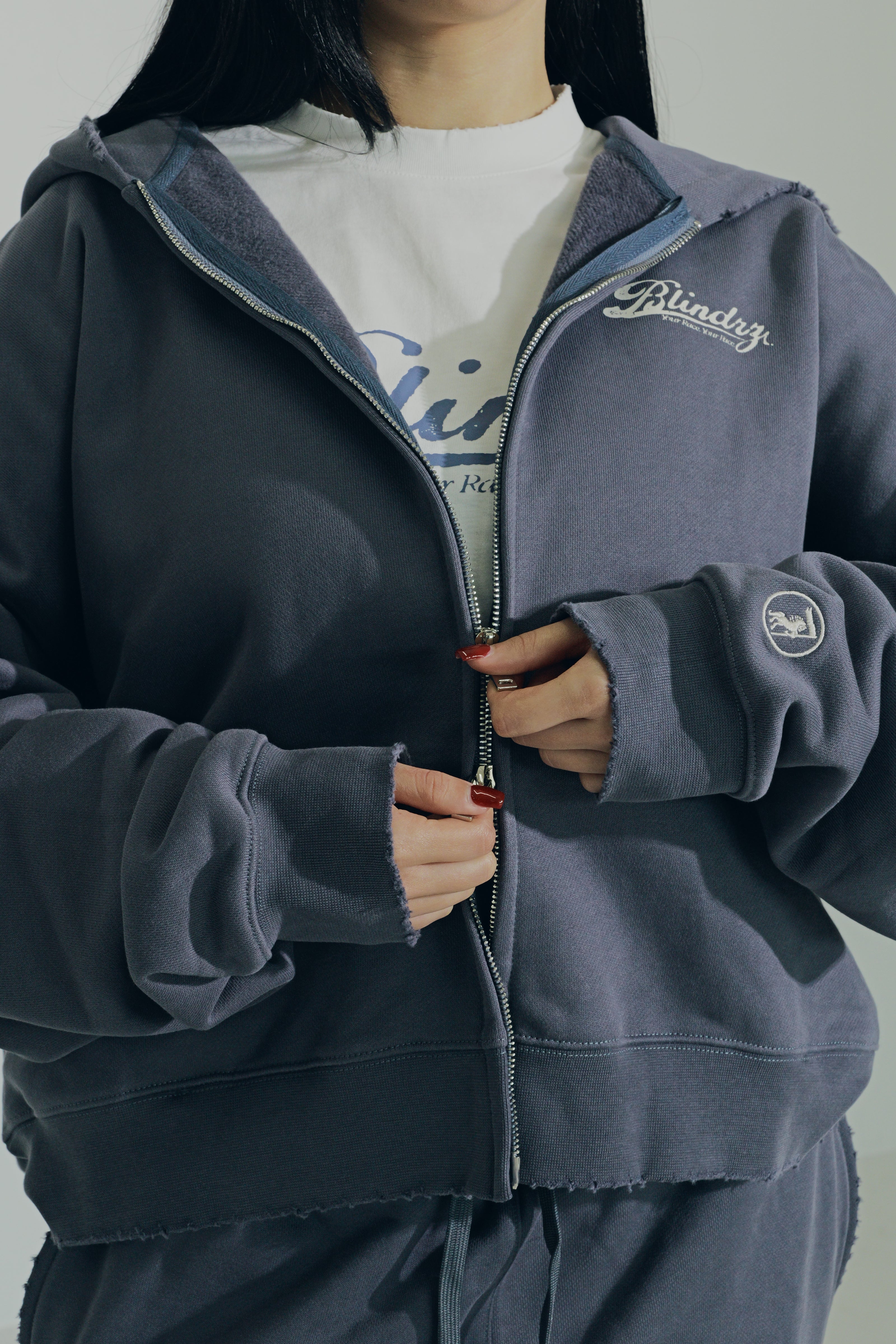• Blue "Script" Zip-Up Hoodie
